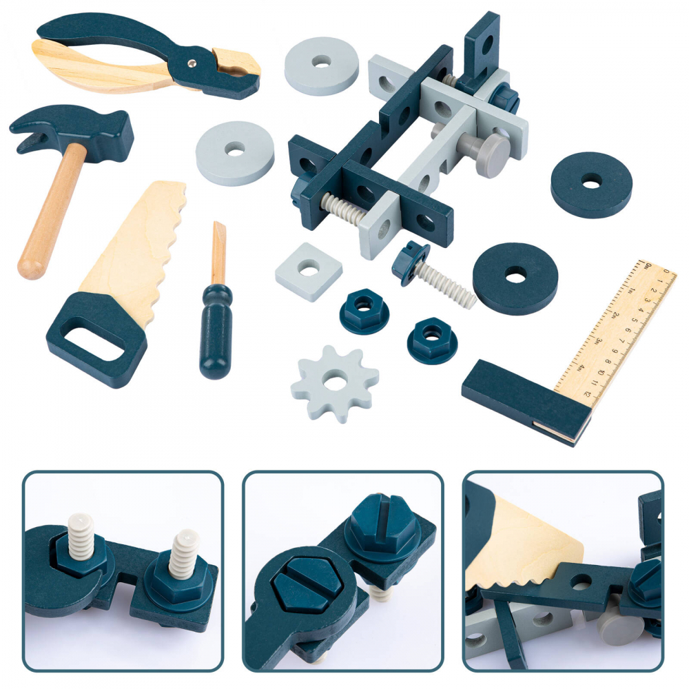 * Trusa de scule cu instrumente din lemn, poate imbunatati capacitatea cognitiva a copiilor,abilitatea practica si dezvoltarea creierului;