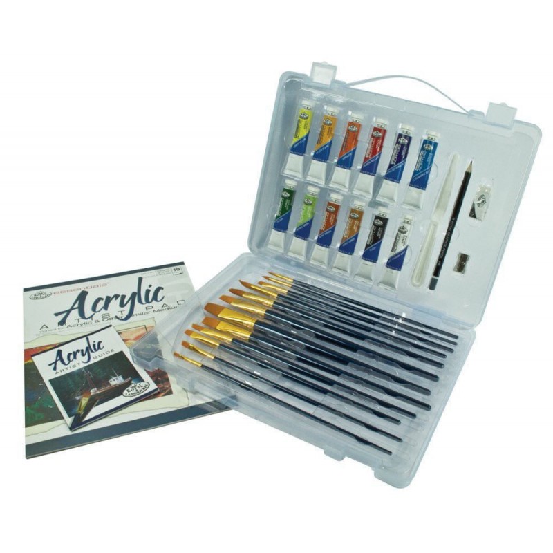 Trusa pictura culori acrilicTrusa de pictura cu set de culori acrilic de la Royal Langnickel, este ideala pentru pictura in aer liber sau calatorii.