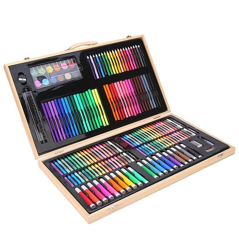 Trusa de pictura si desen Procart 180 piese in cutie depozitare lemn