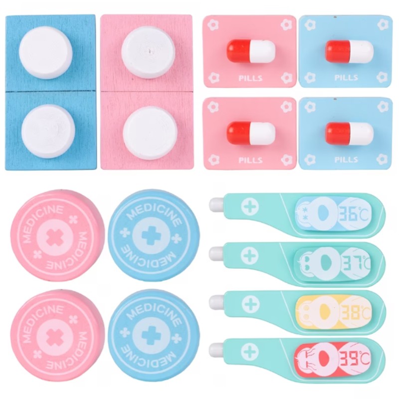 Cele 31 de accesorii necesare micutului stomatolog il ajuta pe acesta sa exploreze lumea prin jocul de rol. Capacele recipientelor pot fi desfacute deoarece sunt prinse cu ajutorul magnetului, termometrul contine 4 placi conectate cu magnet prin care copilul poate schimba gradele, seringa functioneaza cu ajutorul unui arc pentru un efect realist, iar dintii pot fi extrasi si montati cu ajutorul clestelui din set. Setul include inclusiv un stetoscop din metal si cauciuc, medicamente, oglinda, penseta, burgiu, foarfeca, legitimatie.