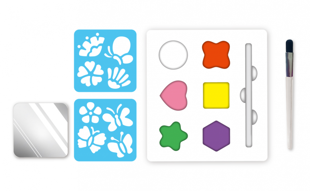 - Șabloane Incluse: Setul vine cu șabloane tematice de flori și fluturi, care fac aplicarea machiajului ușoară și distractivă. Copiii pot folosi șabloanele pentru a crea design-uri detaliate și fermecătoare, stimulându-și creativitatea și abilitățile artistice.