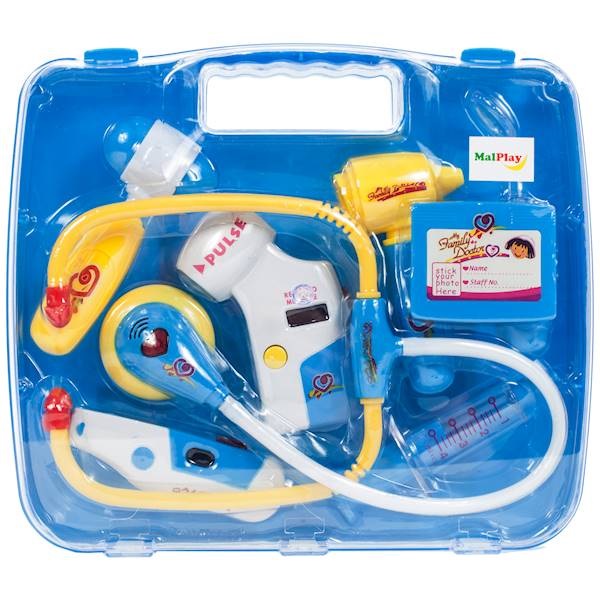 Trusa medicala pentru copii Malplay, cu sunete si lumini, si accesorii esentiale incluse, dimensiune 27,5 x 23,5 cm, blue