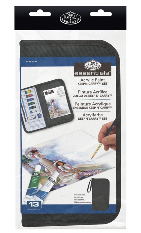 Trusa de pictura cu set de culori acrilice de la Royal Langnickel, este ideala pentru pictura in aer liber sau calatorii.