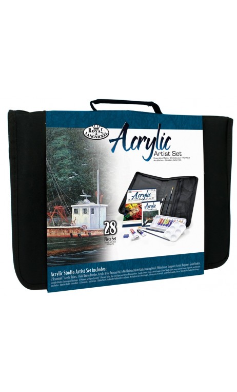 Trusa de pictura cu set de culori acrilice de la Royal Langnickel, este ideala pentru pictura in aer liber sau calatorii.