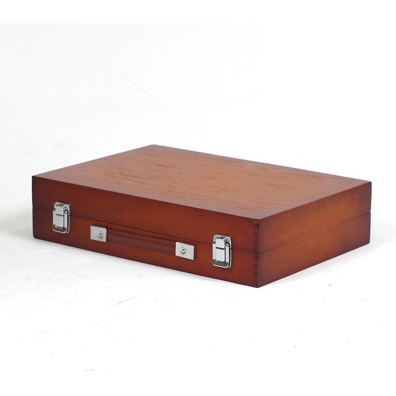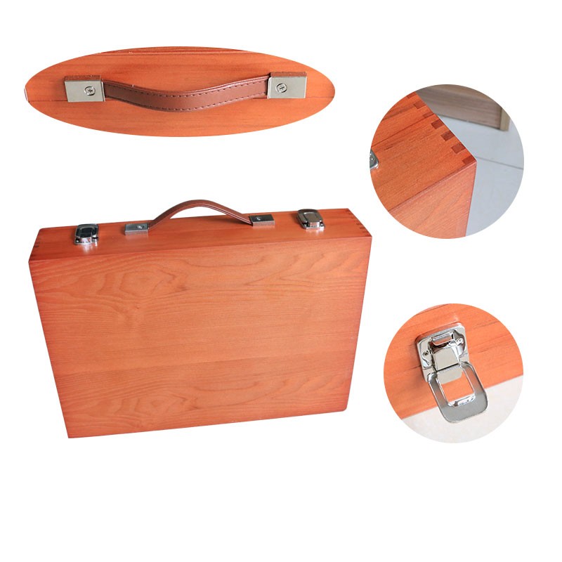Toate cele 174 de piese sunt organizate in 4 compartimente speciale, plasate pe 2 niveluri si pastrate in siguranta intr-o cutie eleganta din lemn, cu catarame si balamale din metal si un maner din piele care faciliteaza transportarea acesteia. Aceasta trusa este, fara indoiala, un cadou extrem de elegant si de practic, perfect pentru toti iubitorii de arta, mici si mari.