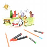 Unele articole contin coloranti care pot lasa pete in timpul activitatilor. Recomandam copiilor sa poarte salopete, sorturi de protectie pentru pictura sau haine care sa le acopere pielea, iar zona de joaca sa fie si ea protejata. Daca vopselele intra in contact cu pielea sau ochii, va rugam sa clatiti imediat cu apa rece din abundenta. Daca apar iritatii, solicitati sfatul medicului.