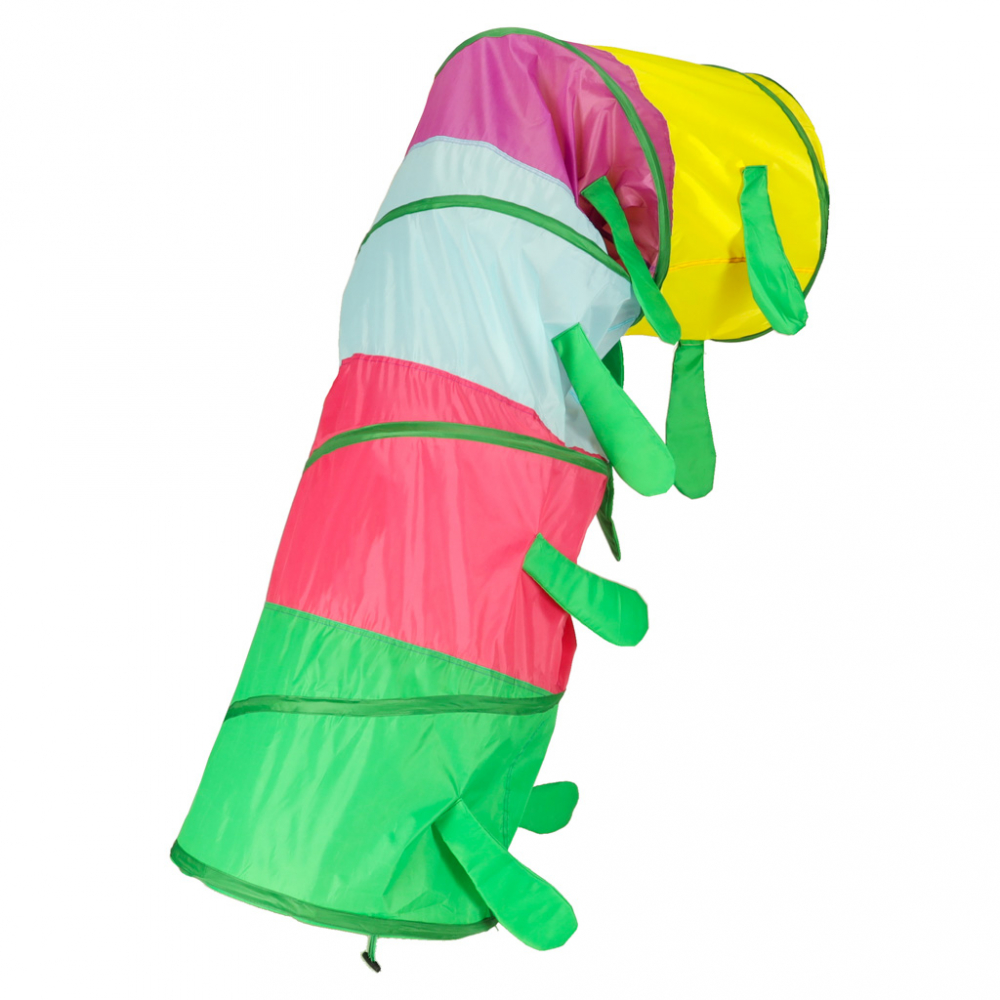 Tunel de joaca pentru copii Ikonka, portabil si pliabil, Omida multicolora, lungime 174 cm, diametru 45cm