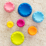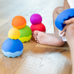 Copiii se distrează stivuind, dărâmând și experimentând cu cele șase piese greutate variată, care se echilibrează, se înșiră perfect și se rotesc dincolo de așteptări.