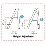 Inaltime reglabila: platforma reglabila pe care sta copilul are opritor pentru un plus de siguranta si pentru a preveni alunecarea acesteia in afara turnului; 2 poziti de inaltine de la 35 la 45 cm.