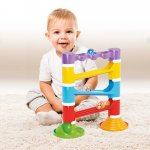 Copiii pot impinge bilele cu mana si se pot bucura urmarindu-le si ascultand sunetele pe care le fac in timp ce coboara pe turn.