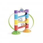 Setul include o pista captivanta si trei bile mari care produc sunete placute in timp ce se rostogolesc pe traseu.
