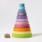 Turn pentru stivuit din 11 piese de lemn colorate in culori pastelate.