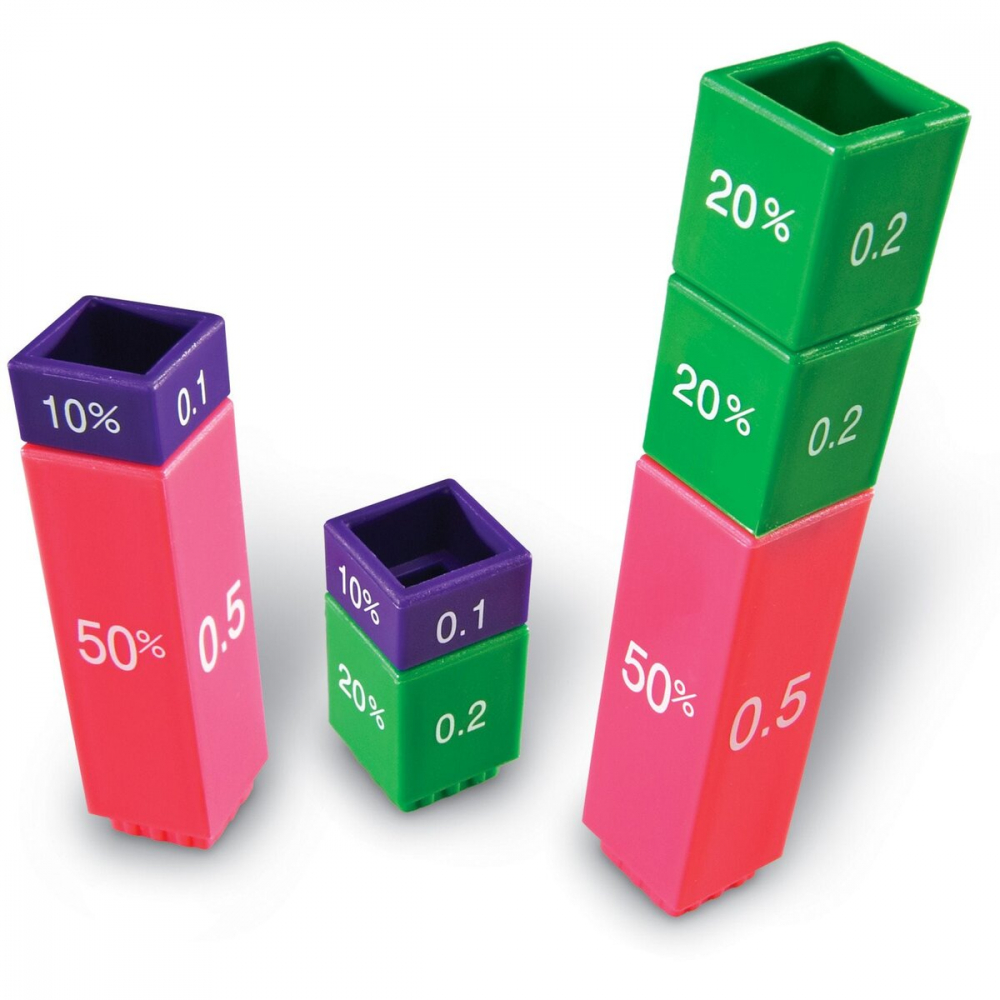 Cuburile colorate, rezistente si legate intre ele sunt perfecte pentru a exersa si compara fractiile, zecimalele si procentele.