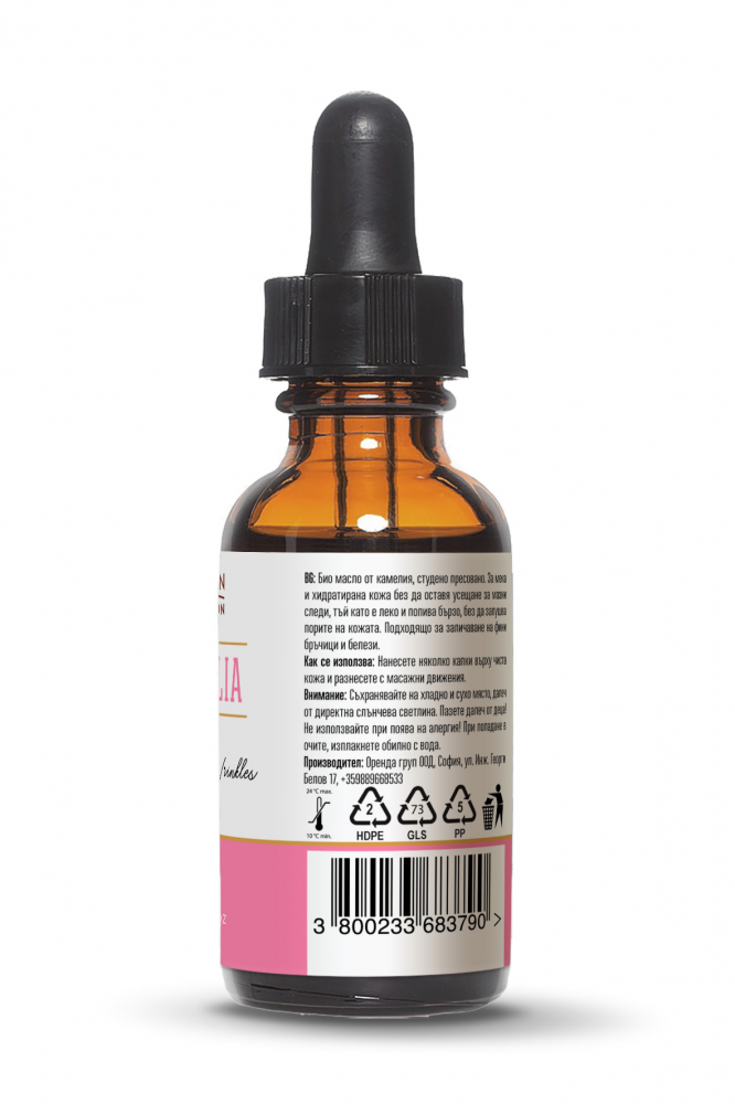 Ulei de Camelia bio, presat la rece. Pentru piele moale si hidratata.