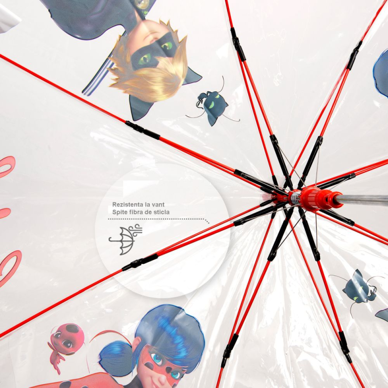 Umbrela baston automata transparenta cu licenta Ladybug, este un accesoriu super dragut atunci cand afara ploua.