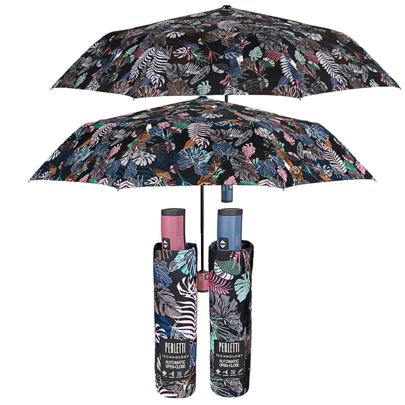 Un motiv floral rafinat, delicat și hotărât feminin pentru această umbrelă pliabilă din linia TECHNOLOGY: umbrele ultra-ușoare și super rezistente cu structură rezistentă la vânt de calitate superioară datorită tijelor inovatoare din fibră de sticlă.