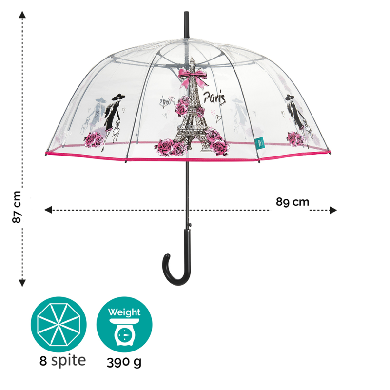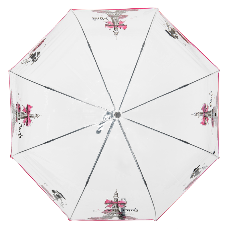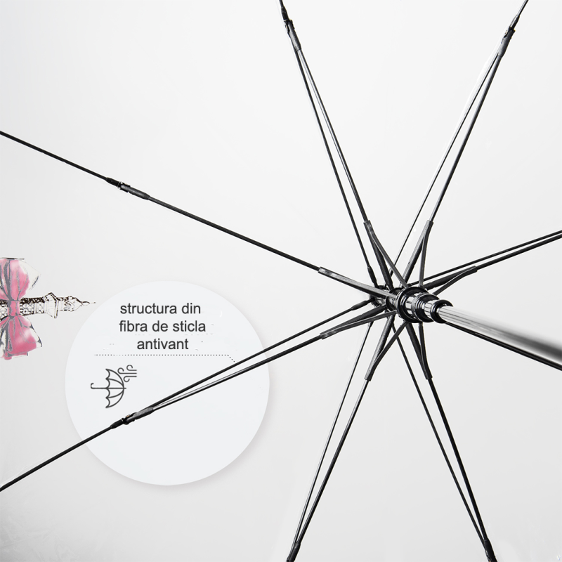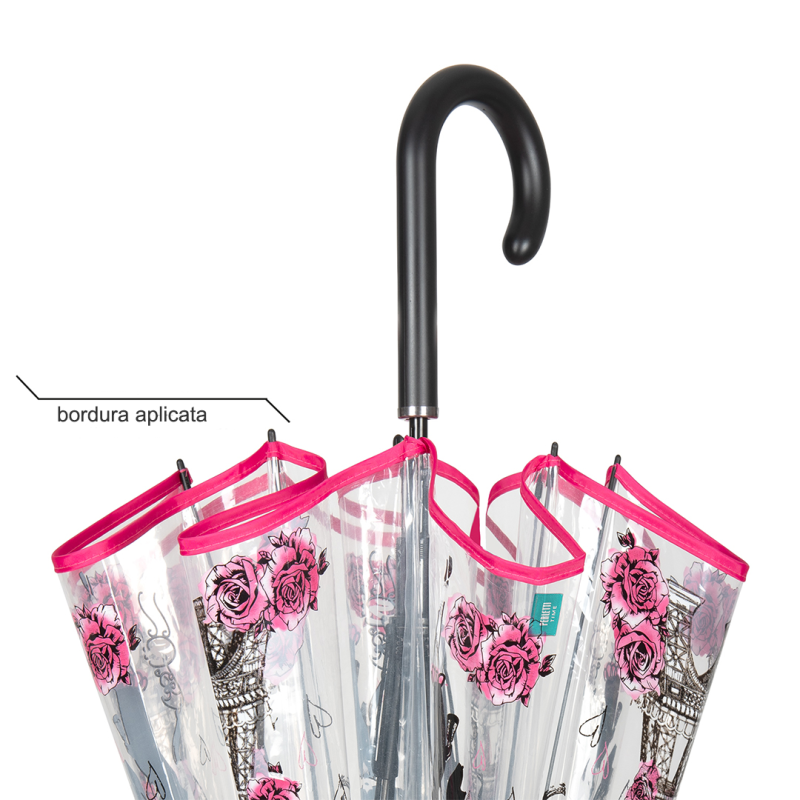 Umbrela transparenta automata model baston Paris, este un accesoriu practic, perfecta in anotimpul ploios.