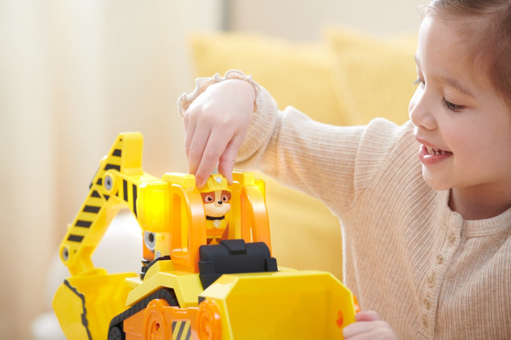 Aceasta jucarie fantastica pentru constructii are roti care functioneaza cu adevarat, doua unelte de jucarie articulate, precum si lumini si sunete captivante, care o fac sa fie de nelipsit pentru fanii seriei Rubble si echipa lui.