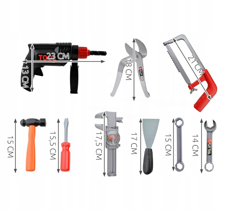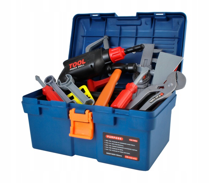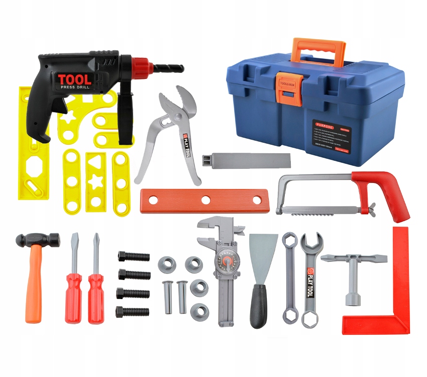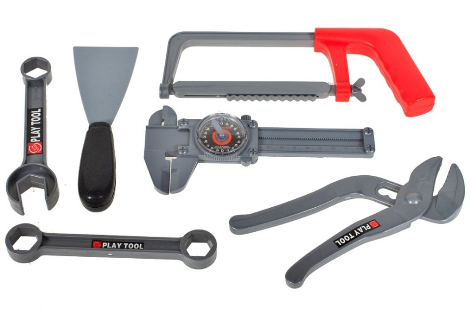 * Setul de instrumente de jucarie „Set de instrumente” va fi de acum inainte un element inseparabil al distractiei copiilor tai. In timp ce se joaca, copiii vor dezvolta abilitati motorii si manuale si vor invata acuratete si diligenta. Vor invata si vor invata numele si functionarea instrumentelor de baza.