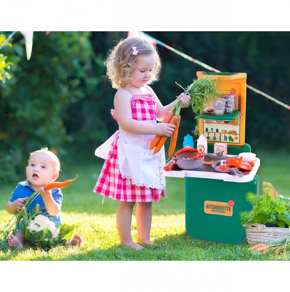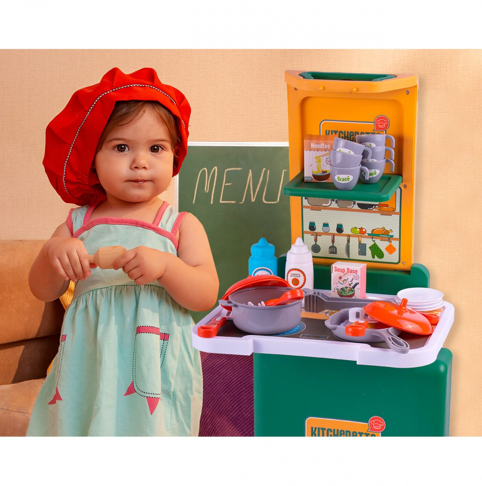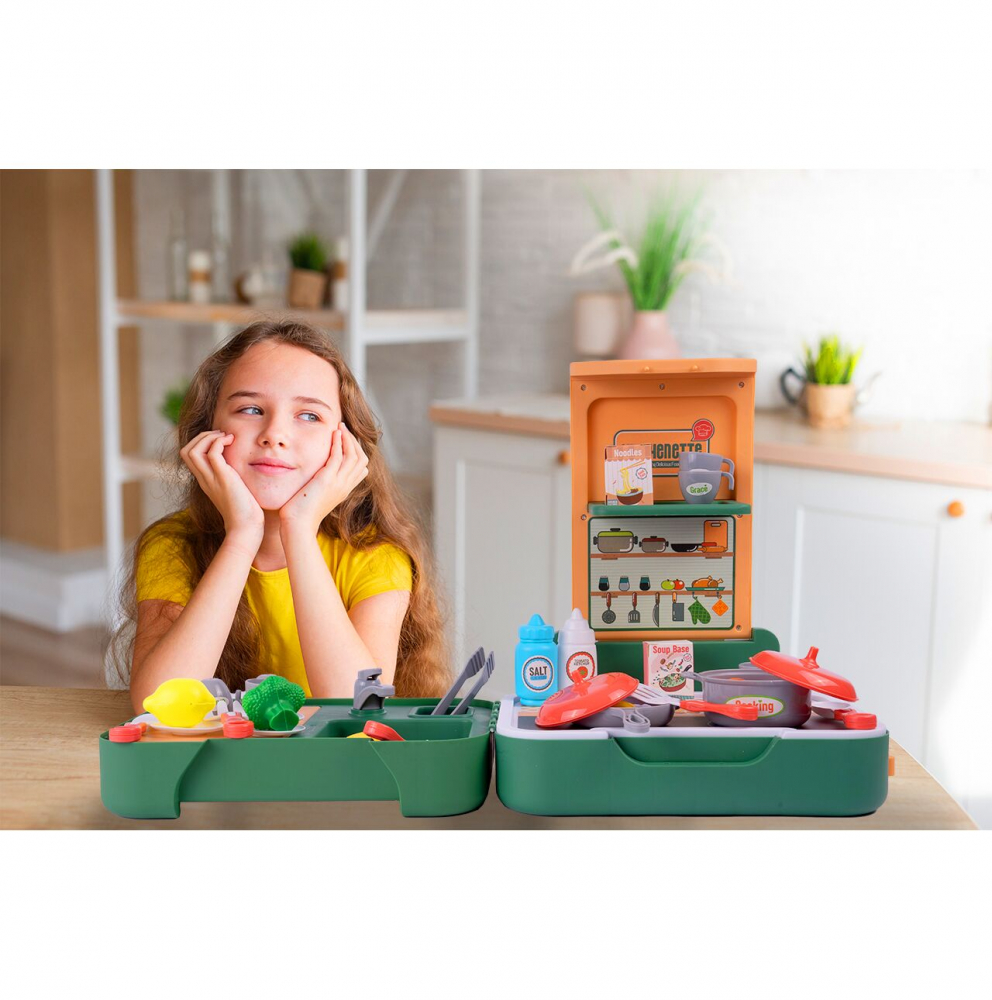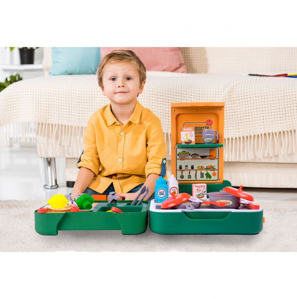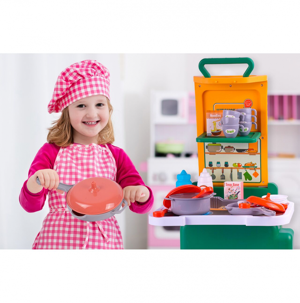 Valiza de Bucatarie pentru Copii Little Cook, pliabila si portabila, include 29 accesorii esentiale