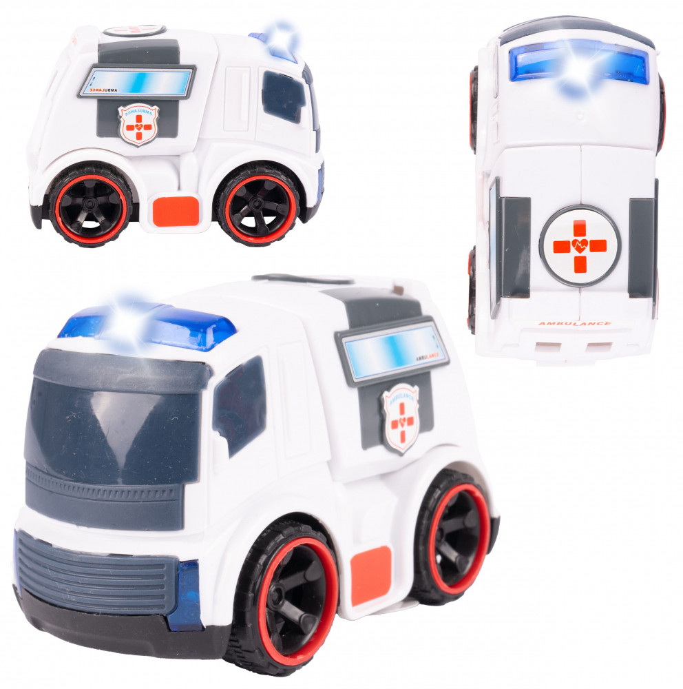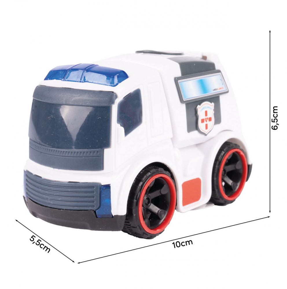 Vehicul de urgenta pentru copii Malplay, cu lumini si sunete realiste, design dinamic si detaliat, constructie solida, dimensiune 10 x 5.5 x 6.5 cm, Ambulanta