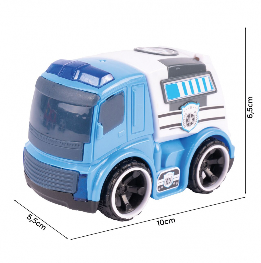 Vehicul de urgenta pentru copii Malplay, cu lumini si sunete realiste, design dinamic si detaliat, constructie solida, dimensiune 10 x 5.5 x 6.5 cm, Police