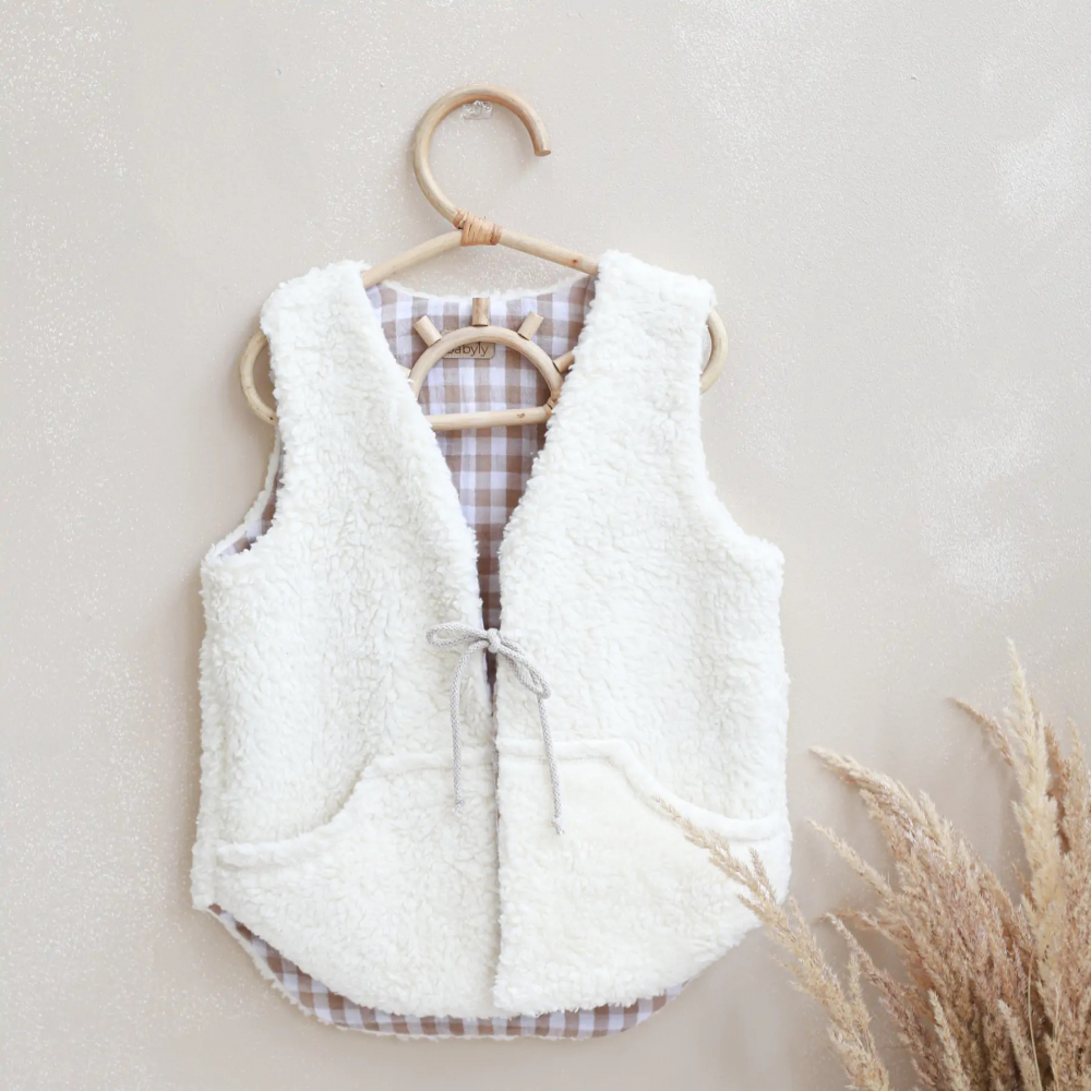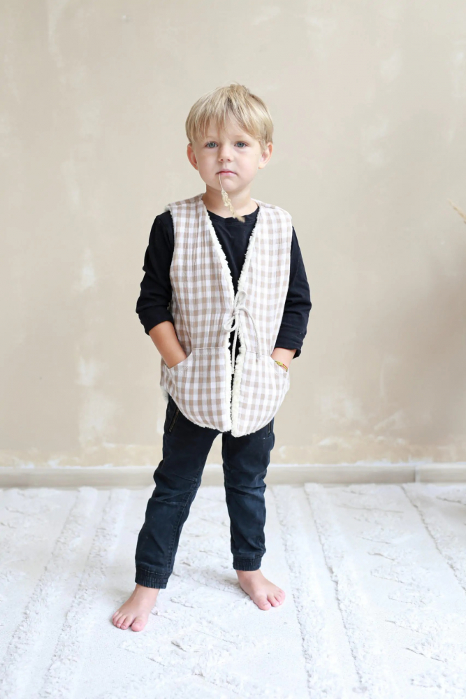 Vesta BabyLy pentru copii reversibila dublat muselina carouri bej si tesatura bucle crem Teddy 92-98 1-3 ani