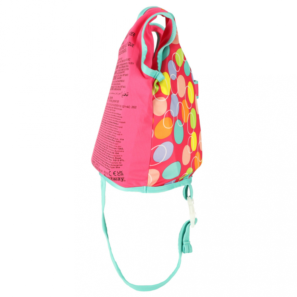 Vesta de inot pentru copii Bestway Pink , Marime S/M pentru 1-3 ani, Umplutura din spuma, Protectie UV UPF 50+, Inchidere cu fermoar, Centuri reglabile, Flotabilitate testata maxim 30 kg