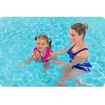 Vesta de inot pentru copii Bestway Pink, Marime M/L pentru 1-3 ani, Umplutura din spuma, Protectie UV UPF 50+, Inchidere cu fermoar, Centuri reglabile, Flotabilitate testata maxim 30 kg