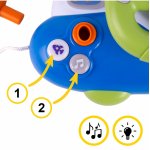 * Jucaria ofera diverse butoane si elemente de manipulare, care ajuta la dezvoltarea abilitatilor manuale ale copilului mic.