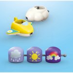 •Trei elemente de remorca cu simboluri tiparite pe ambele parti (Partea 1: Ploaie, Soare, Curcubeu; Partea 2: Numerelor de la 1 la 3)
