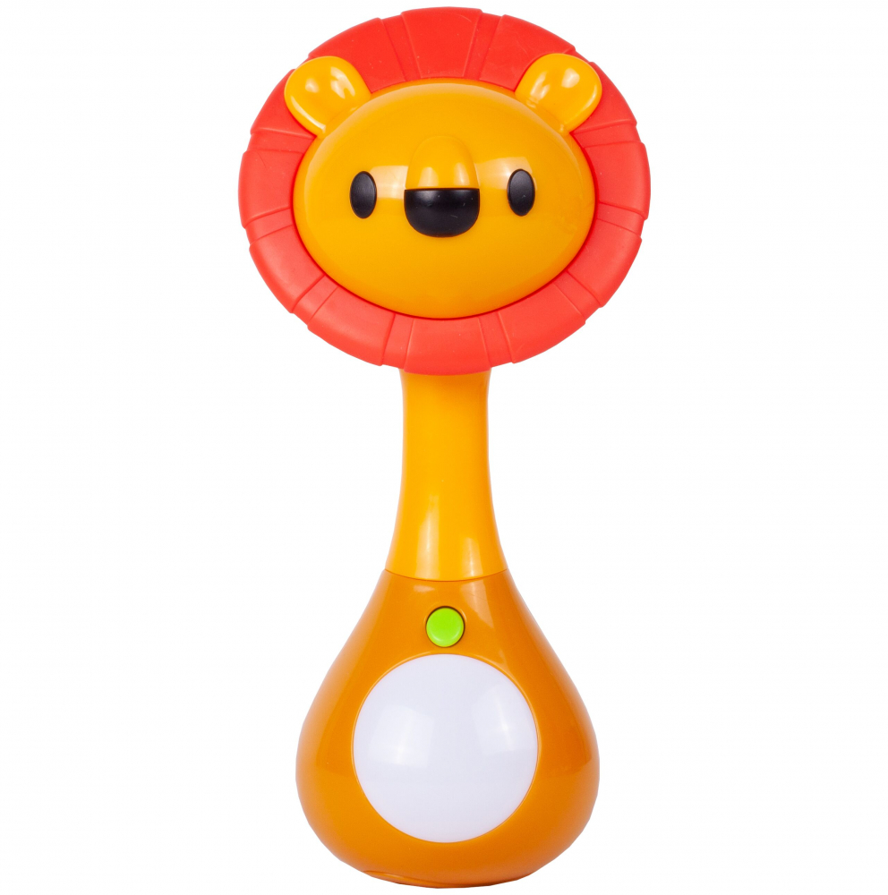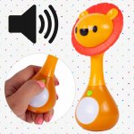 * Dupa apasarea indelungata a butonului central, pozitionat pe burtica, jucaria va emite o melodie vesela, si va lumina in diferite culori;